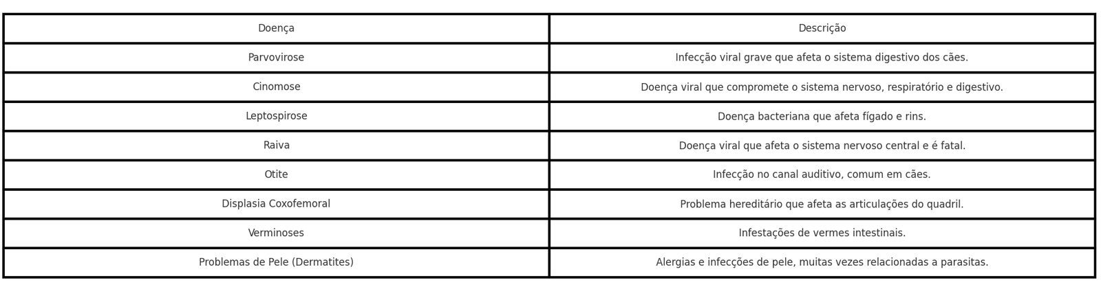 Doenças como parvovirose, cinomose, leucemia felina e tantas outras podem ser evitadas ou tratadas com sucesso quando identificadas cedo. Com vacinas, controles de parasitas e check-ups regulares, é possível reduzir drasticamente o risco de complicações e garantir uma vida mais saudável e feliz para o seu pet.